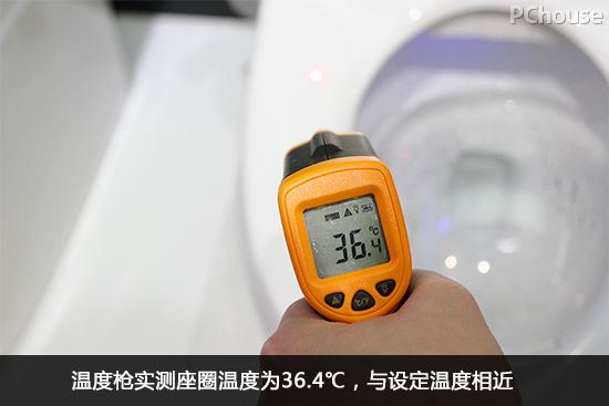 编辑在现场使用温度计测试座圈温度,遥控器设定温度37℃,经过一分钟加热后,温度计显示座圈温度为36.4℃,(由于受现场环境和温度等条件影响,测量与实际温度稍有偏差),实测与设置的温度相近。采用智能温感技术,可调式温度加热座圈,根据室温调节到人体最舒适的温度,同时也可以通过遥控器调节适合个人的温度。