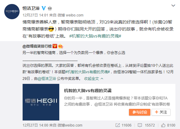 究竟是高智商的他更让你钟情,还是高情商的他更让你动心?恒洁邀请了大家一起说说对于另一半#机智的大脑vs有趣的灵魂#的选择,看看他们都是怎么说的吧!