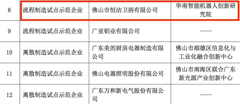 近日,恒洁卫浴获得佛山市2017年「中国制造2025」试点示范企业认定,并成为该名单中唯一的专业卫浴制造企业。