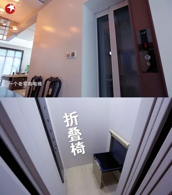 考虑到冯老太太一家人中最小的儿子也已60多岁,面对高楼层的房屋除了楼梯之外,他们更需要的是一部贯穿全部楼层的电梯便于日后的生活,设计师还在电梯内设置了座椅,方便老人行动使用。