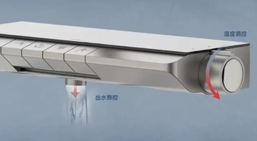 除了出色的沐浴体验,T7琴键花洒还注重细节设计。其操控台上方留出了350mm的超大置物平台,方便用户放置洗发水、沐浴露等日常洗漱用品,伸手即可拿到,无需再为寻找这些小物件而手忙脚乱。同时,全钢化玻璃面板的设计不仅美观大方,还具有良好的疏水效果,轻轻一擦即可保持干净。