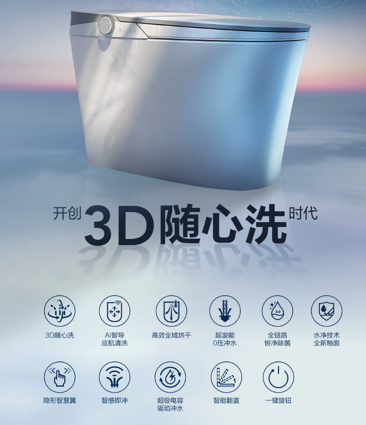 就拿恒洁R9智能马桶来说,开创了3D舒适洗功能,通过恒流技术实现了单孔多水型,包含5种基础水型、15种清洗水型,恒温体验,不会忽冷忽热的,没有一点不适,而且喷嘴不会回枪,零等待切换水型。同时它针对不同人群贴心设计,支持7大清洗模式,包括臀洗、妇洗、助便、劲洗、移动清洗、左右摆动清洗、脉动清洗,满足所有家庭成员的洗护需求。