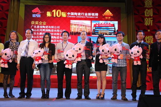 第十届中国陶瓷行业“新锐榜”颁奖典礼现场(左五为恒洁卫浴产品经理林培旭)