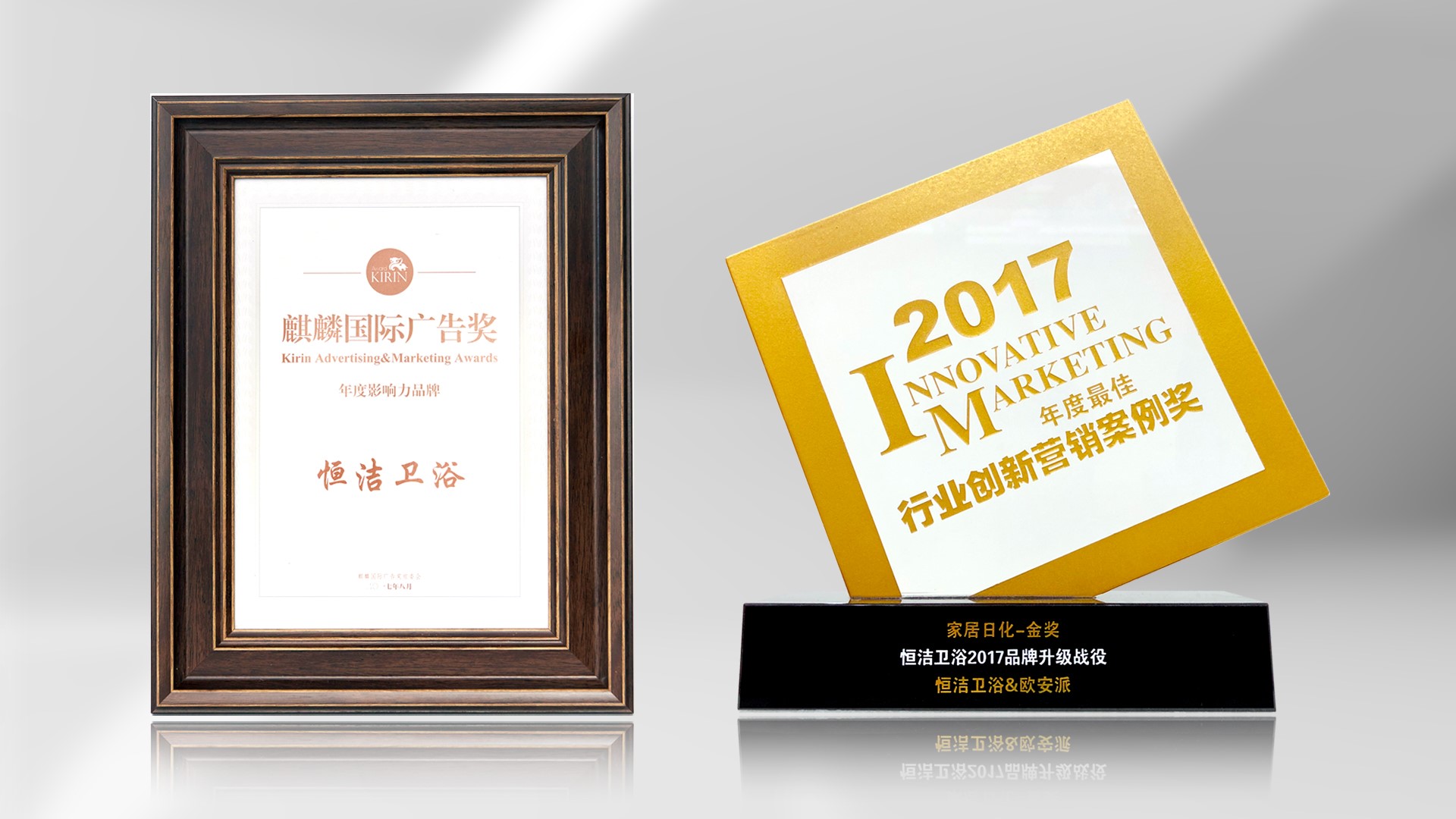 专注产品品质,也要讲好品牌故事。恒洁在2017焕新形象,和同道大叔聊十二星座的情商和智商,和奇葩辩手聊实用品质的回归,用梦想智造牵手《梦想改造家》,与央视网红——「局座」张召忠老师聊大国小家的生活梦想,一场场突破常规的营销事件和不断超越的营销效果让恒洁赢得无数行业内的认可奖章。智能双Q战役荣获麒麟国际广告奖、长城广告奖;2017年品牌升级战役更是荣获营销业界权威大奖-2017年度最佳创新营销案例奖金奖 。恒洁将在未来继续与消费者进行走心的互动和沟通。