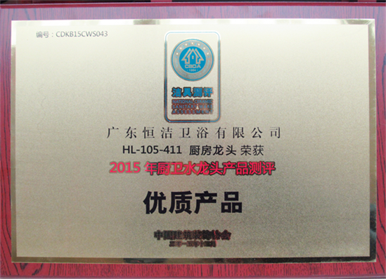 恒洁HL-105-111厨房龙头获得水龙头测评优质产品大奖