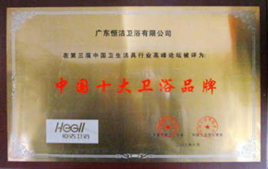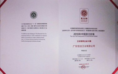 恒洁卫浴连续四年获得由中国建筑装饰协会厨卫工程委员会评选的“中国厨卫百强卫浴领军企业10强”称号。
