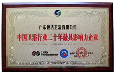 恒洁卫浴荣获全国工商联颁发的中国卫浴行业“最具影响力品牌”。