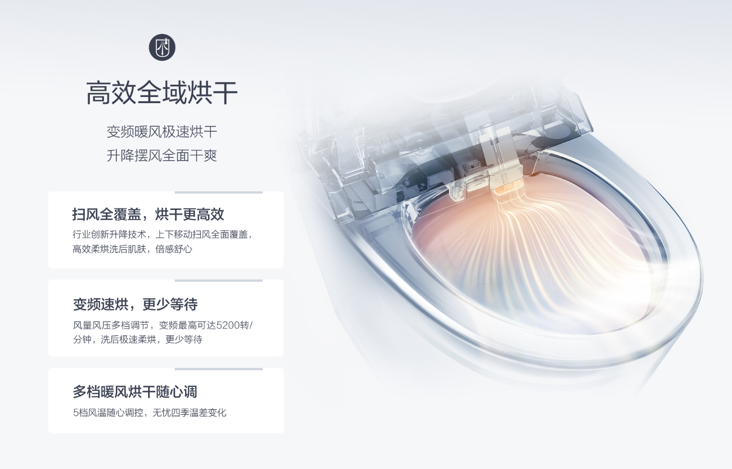 除了3D舒适洗功能外,恒洁R9智能马桶还配备了AI智导巡航清洗功能。这一功能能够自动跟踪臀部落座位置,自动调节喷枪前后位置和喷嘴左右喷水角度,实现精准清洗,此功能设计不仅提高了清洗的效率,还大大提升了使用的便捷性。