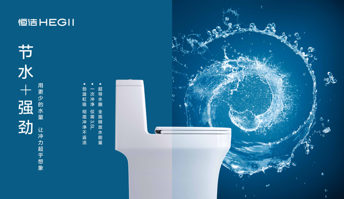 面对中国水资源短缺和分布不均衡的现状,恒洁研发出用水仅需3.5L,比普通 6L坐便器每次冲水节省40%的超旋风超节水坐便器。