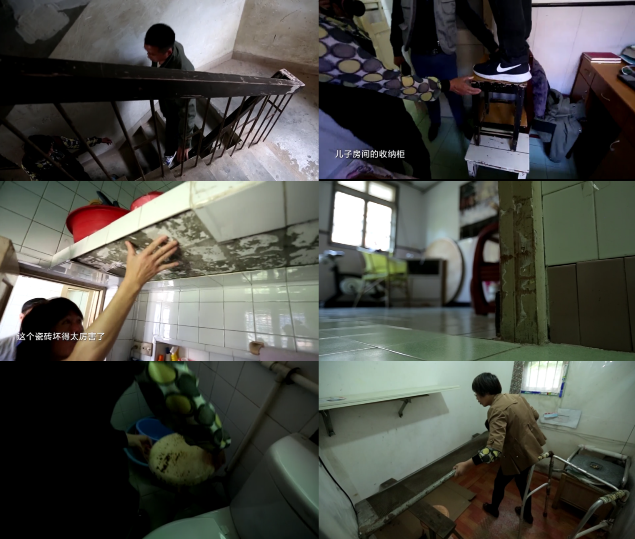从母子二人的居住状况我们可以看到,这是一个极度不安全和不方便的家。通往委托人的家需要经历13级楼梯,这对儿子来说每一步都充满了危险;家中收纳柜处于屋顶,年迈的母亲必须要叠上两层椅子才能够得到。回忆起过世父亲的经历,同时也是儿子将来所要面对的问题,更是让人心痛不已。由于房门间距小,使用轮椅非常困难,门框周围布满了轮椅印记;过去为了防止父亲上厕所的过程中出现意外,爸爸只能在卫生间里独自呆上一整天;父亲后期病情越发严重,妈妈已经无法帮助他下楼,爸爸最后的两年时光就只能在一个阴冷、潮湿的地下车库里度过。