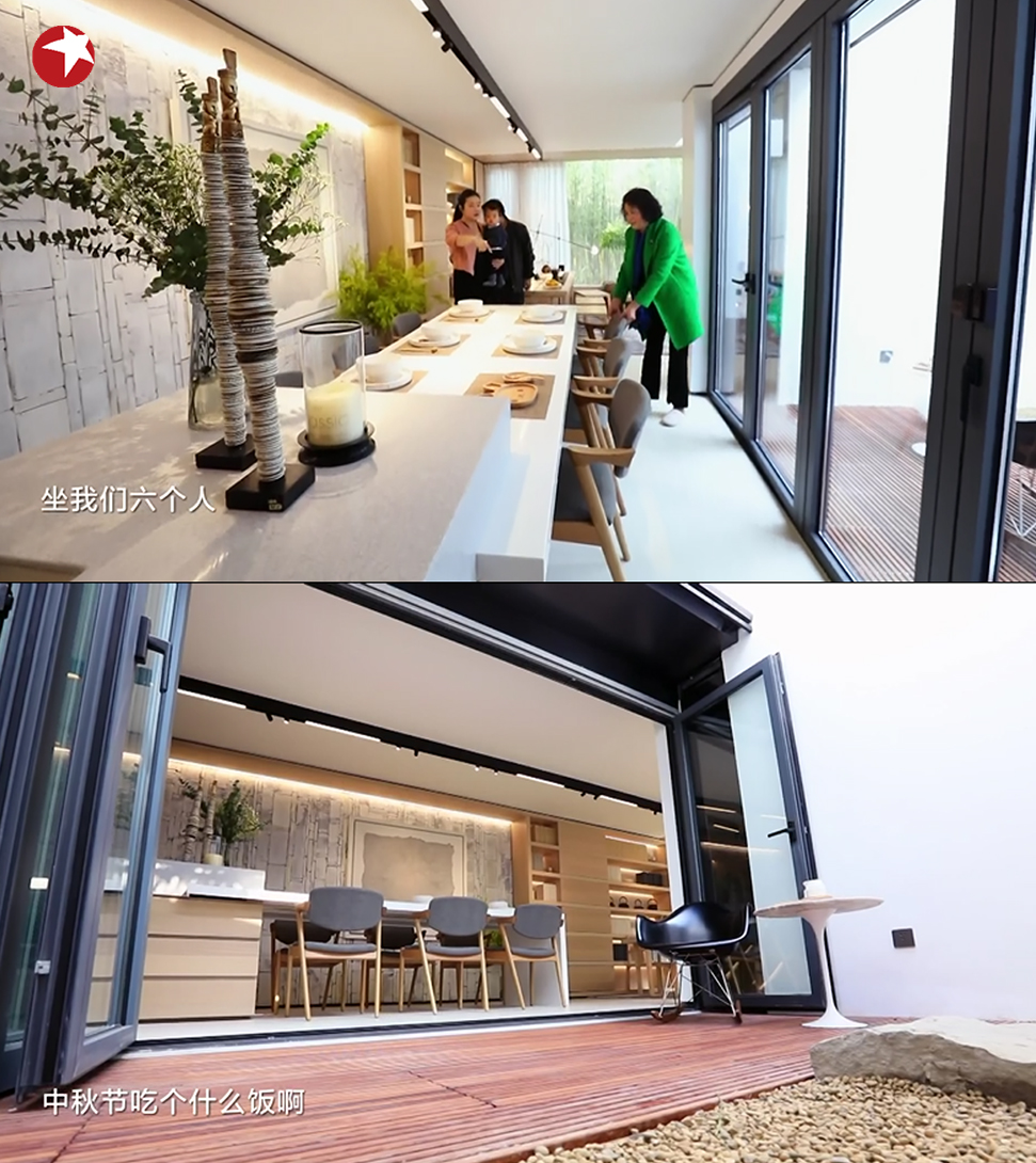 屋子内天井的三个面,每个面都能利用到自然阳光,餐厅部分可以完全打开,将原本就是开放式的餐厅,放大到更加宽敞,满足一家人其乐融融的团圆时刻。