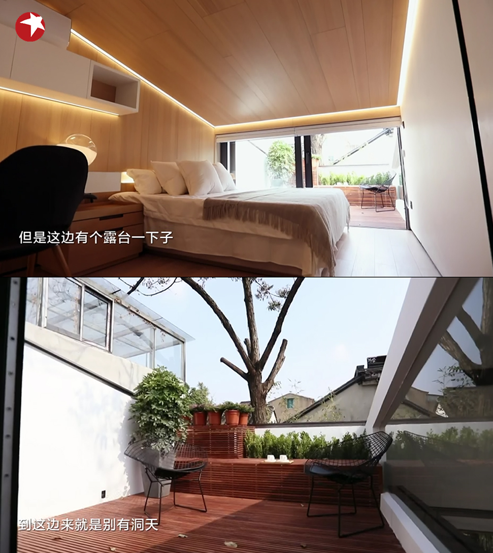 二楼女儿卧室房间虽小,但打通的露台别有洞天。二楼这两个新增的宽敞露台,不仅补充了采光与通风,还给一家人增加了亲近自然、休息与放松的场所。