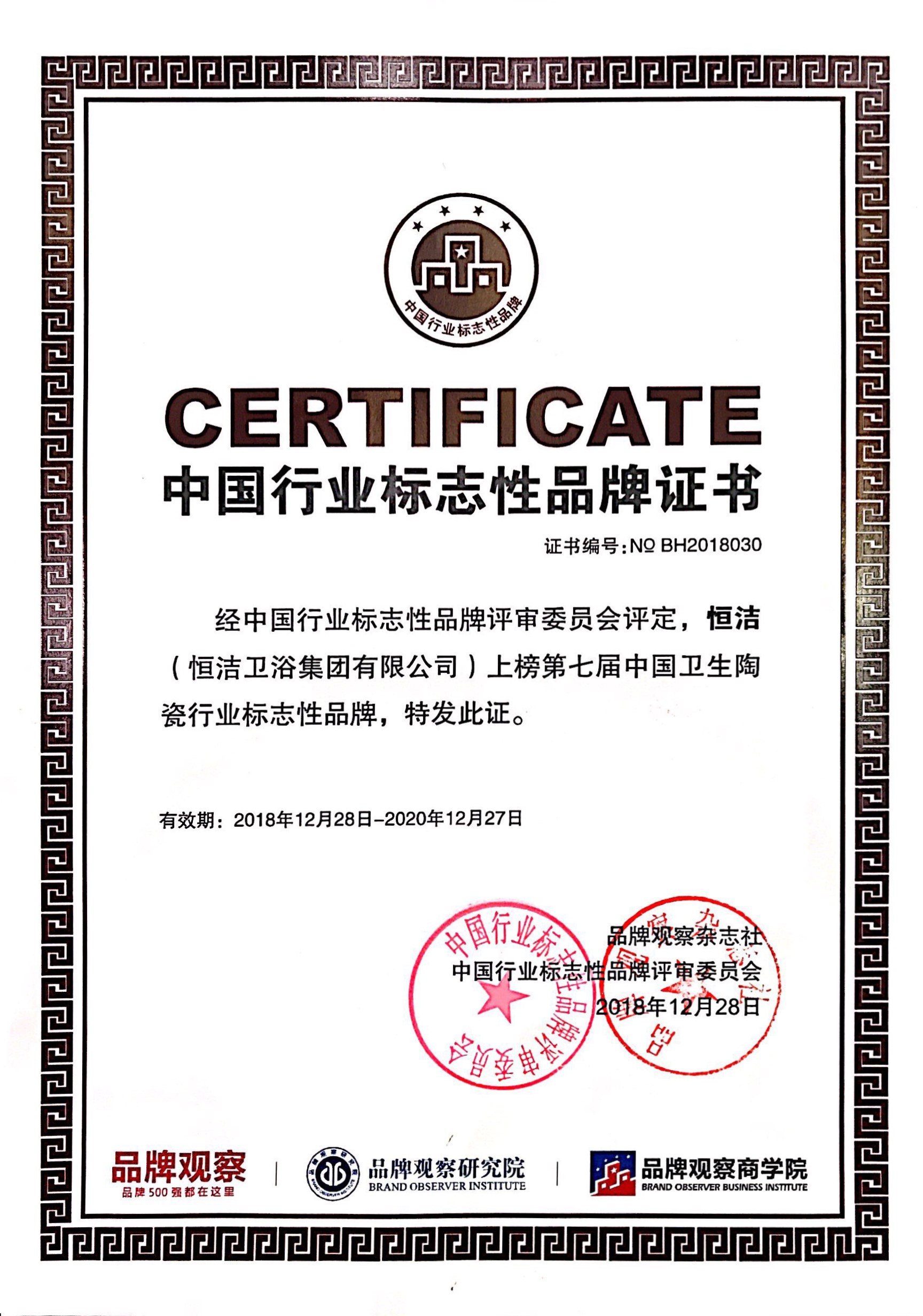 成为「2018中国卫生陶瓷行业标志性品牌」,意味着恒洁作为卫生陶瓷行业首席品牌的地位得到更权威确认,也意味着恒洁持质推动行业转型升级中的担当得到了各界的深度认可。