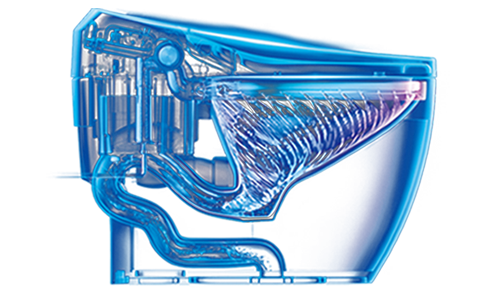 - 导流导压(国家发明专利号:ZL 2007 1 0143460.X):超导水圈,瞬时增压,全面释放水能量。劲漩虹吸,极速水流,彻底冲净不返流。管道系统整体优化,冲得干净更省水。