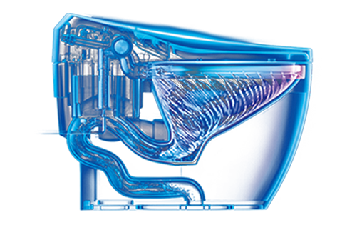 - 导流导压(国家发明专利号:ZL 2007 1 0143460.X):超导水圈,瞬时增压,全面释放水能量。劲漩虹吸,极速水流,彻底冲净不返流。管道系统整体优化,冲得干净更省水。