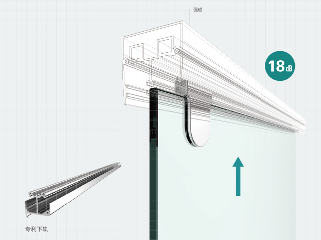 轨道悬浮设计根据悬浮技术原理设计,最大限度减少滑轮与导轨摩擦,让淋浴房在轻盈的推拉中合奏出18分贝的最美和音。