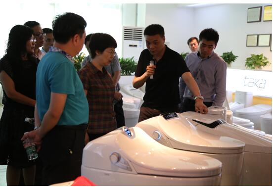 国家质检总局张沁荣副局长一行先后参观了智能卫浴生产车间、开发室、实验室、产品展厅。期间,恒洁智能卫浴深圳生产基地负责人余鹏程详细介绍了恒洁智能卫浴近年来在产品质量和品质提升上所取得的全局突破。质检总局考察团一行在考察过程中对恒洁智能卫浴生产基地表现出浓厚的兴趣,纷纷驻足停留,仔细观察行业最新的活水即热智能坐便器的生产过程,并饶有兴致地向恒洁工作人员详细了解恒洁智能产品的各项质量和安全指标。