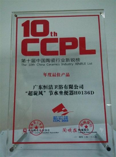 近日,被誉为中国卫浴“奥斯卡”的第十届中国陶瓷行业“新锐榜”盛大揭晓,恒洁卫浴节水实力派产品“恒洁超旋风”H0136D摘得“年度最佳产品奖”,继H0129D后又一“超旋风”产品成为年度马桶之王。另外蝉联“年度风云企业”大奖的恒洁卫浴无疑成为“新锐榜”追求的新锐企业标杆。