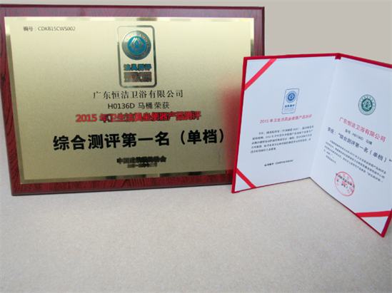 恒洁「超旋风」坐便器与恒洁厨房龙头不负众望,凭借技术、环保优势,夺得「金马桶」、「金龙头」等四项大奖,其中恒洁H0136D 马桶更以2015年卫生洁具坐便器产品综合测评第一名(单档)的荣誉享誉全场。