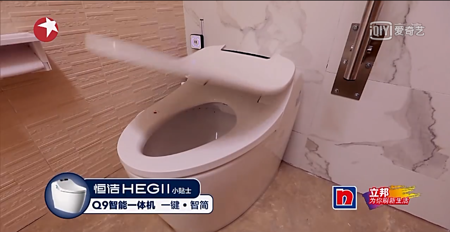 恒洁智能Q9坐便器同样也为母子二人提供了便利,其独有的一键旋钮设计,让操作化繁为简,无需弯腰转身,方便行动不便者进行操作;其接近感应功能,靠近盖板便会自动翻开,给予贴心的使用体验。此外坐便器搭配的U型扶手,更是便于小李在未来也能独自上厕所。