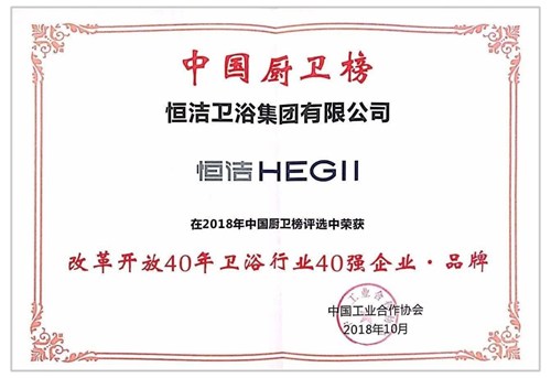 中国厨卫榜作为卫浴行业权威的评选活动,值此改革开放40周年之际,评选出「改革开放40年卫浴行业40杰出人物」、「改革开放40年卫浴行业40强企业」,旨在表彰对行业发展有卓越贡献的优秀企业和杰出人物,树立行业典范,更好地推动中国卫浴行业由「高速发展」向「高质量发展」转变。恒洁卫浴此次荣获两大重量级奖项,充分体现了业界对恒洁品牌影响力的认可,也是对恒洁在引领行业发展上的高度肯定,进一步夯实了恒洁中国卫浴领导品牌的地位。