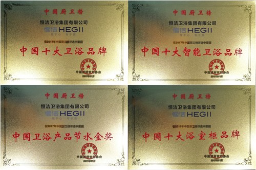 不止是获得「红棉奖」,恒洁近日摘得多项品牌、产品等领域大奖。此前,在北京举行的 2017中国厨卫行业高峰论坛暨中国厨卫榜颁奖典礼上,恒洁也展现全能「大奖收割机」风范——除分获「中国卫浴产品节水金奖」、「中国十大浴室柜品牌」、「中国十大智能卫浴品牌」外,更凭借综合实力和创新表现,成功斩获2017年「中国十大卫浴品牌」奖项——至今已实现九连冠!