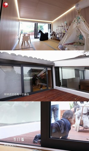 设计师还专门为孩子们打造了一间充满童趣的儿童房,房间延伸出去是一个露台,室内与室外露台的零门槛设计,让孩子们可以安全玩耍。