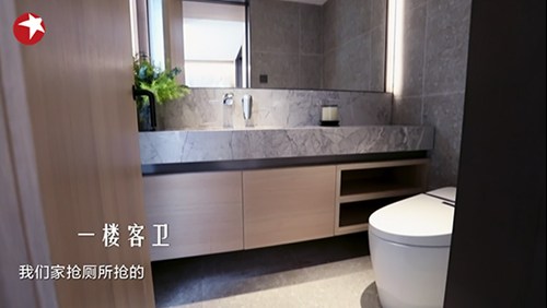 对于整个房子的卫生间,设计师也是下了很大的功夫。全屋一共4个卫生间,包括一楼汪先生主卧的卫生间和客卫,二楼女儿卧室的卫生间,和儿童房的卫生间。