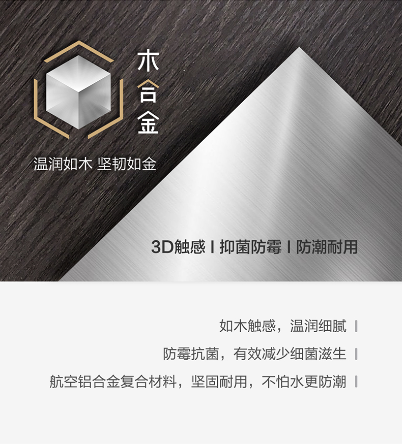 - 2、柜身生态木,免漆环保;面板边框为铝合金材质,呈现立体造型;
