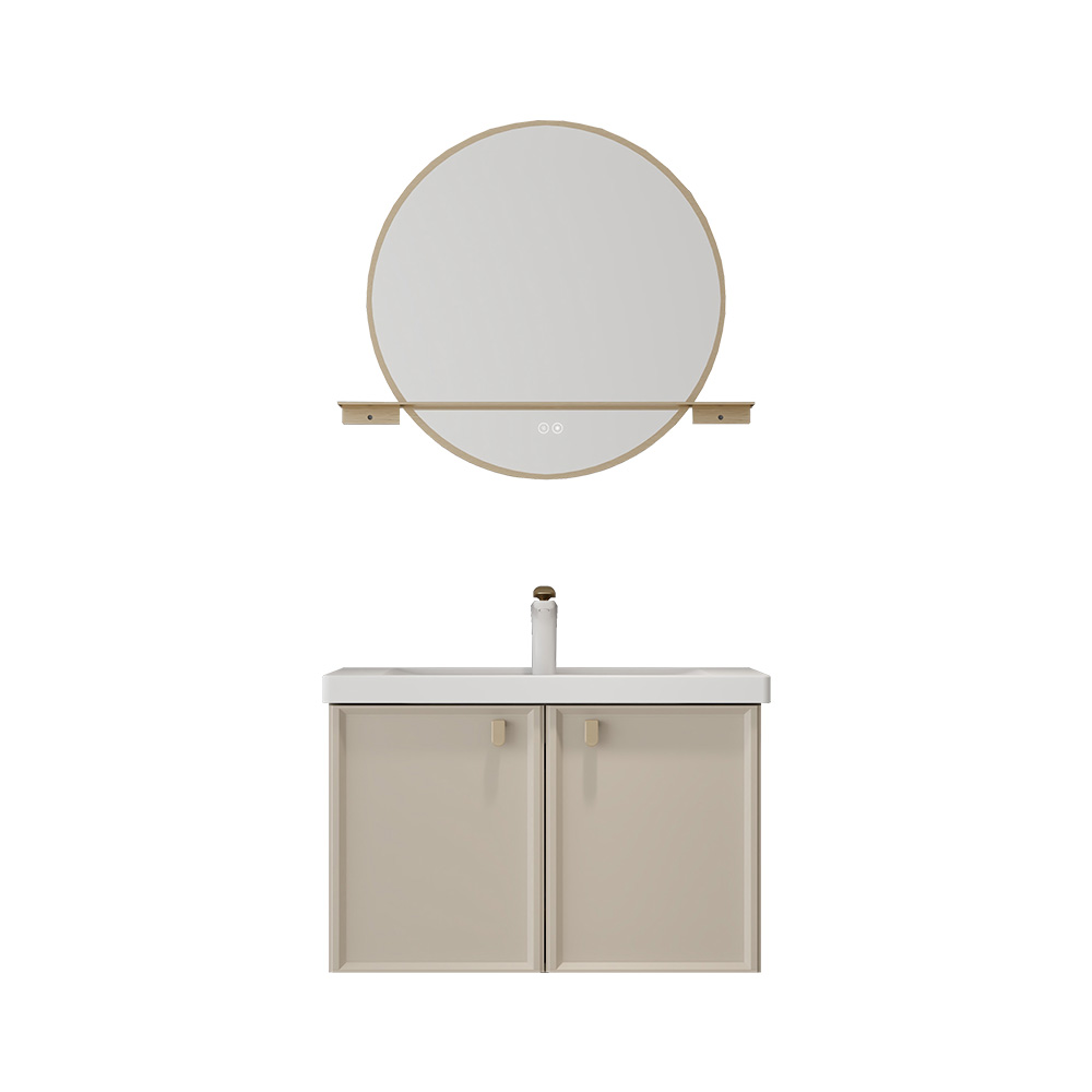 - 新中式设计元素:徽派建筑元素(吸塑造型门板提取马头墙元素,香槟金带纹理造型拉手提取飞檐和琉璃瓦元素),金属包边圆镜搭配触控氛围灯设计,传统与时尚碰撞,呈现新中式格调