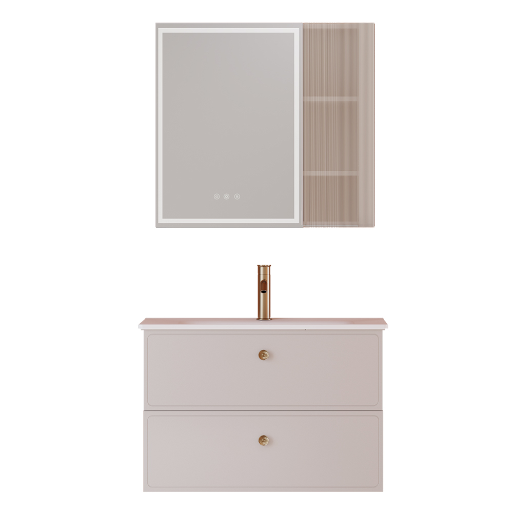 - 2、轻法式浴室柜,法式拱形门板,轻盈配色,浪漫优雅;