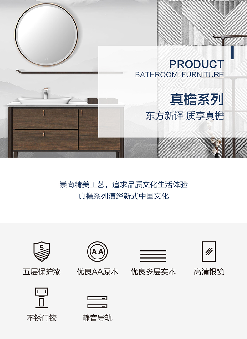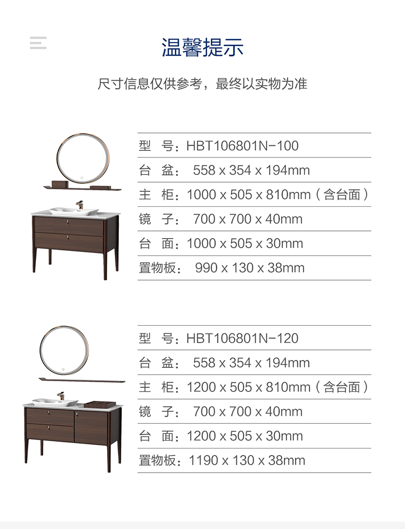 HBT106801N-120 (经典胡桃木色)实木浴室柜