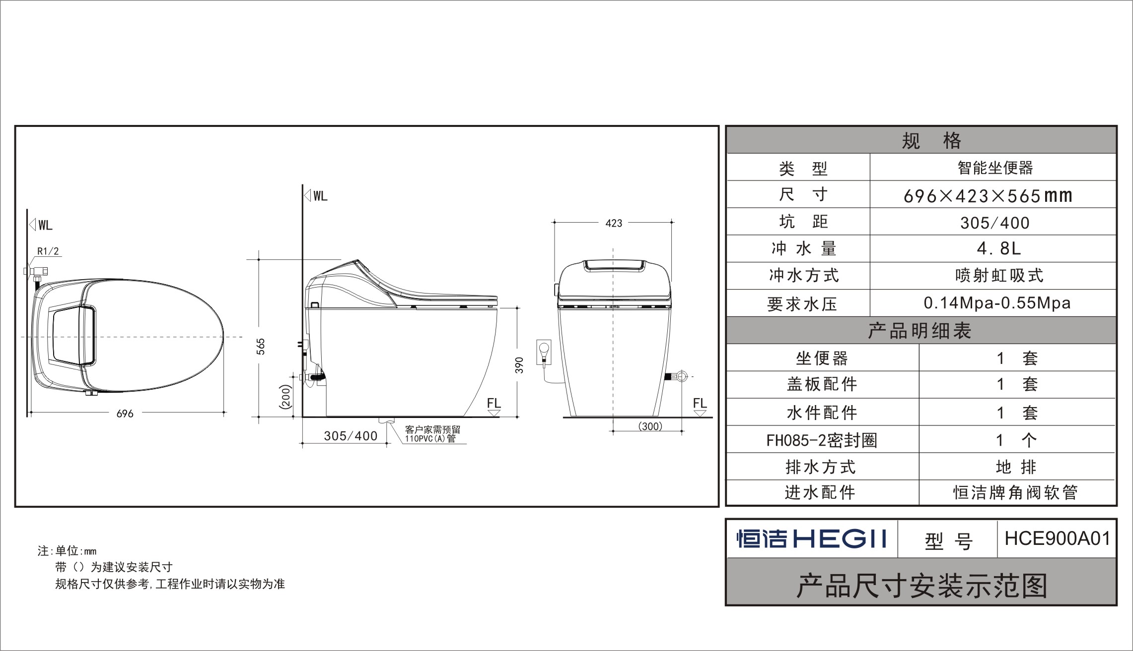 - 坐便器智能盖板:1套