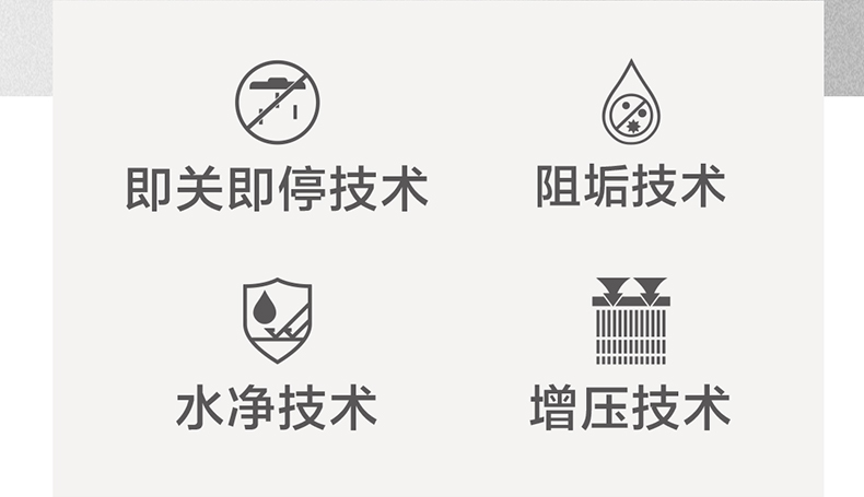 - 即关即停技术,关水瞬间即停,不滴水无残留