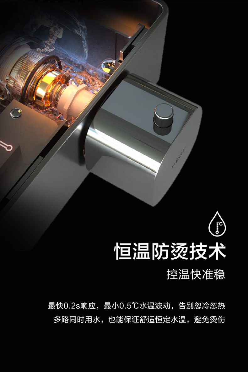 - 恒温防烫技术,0.2s快速响应,±0.5℃精准控温