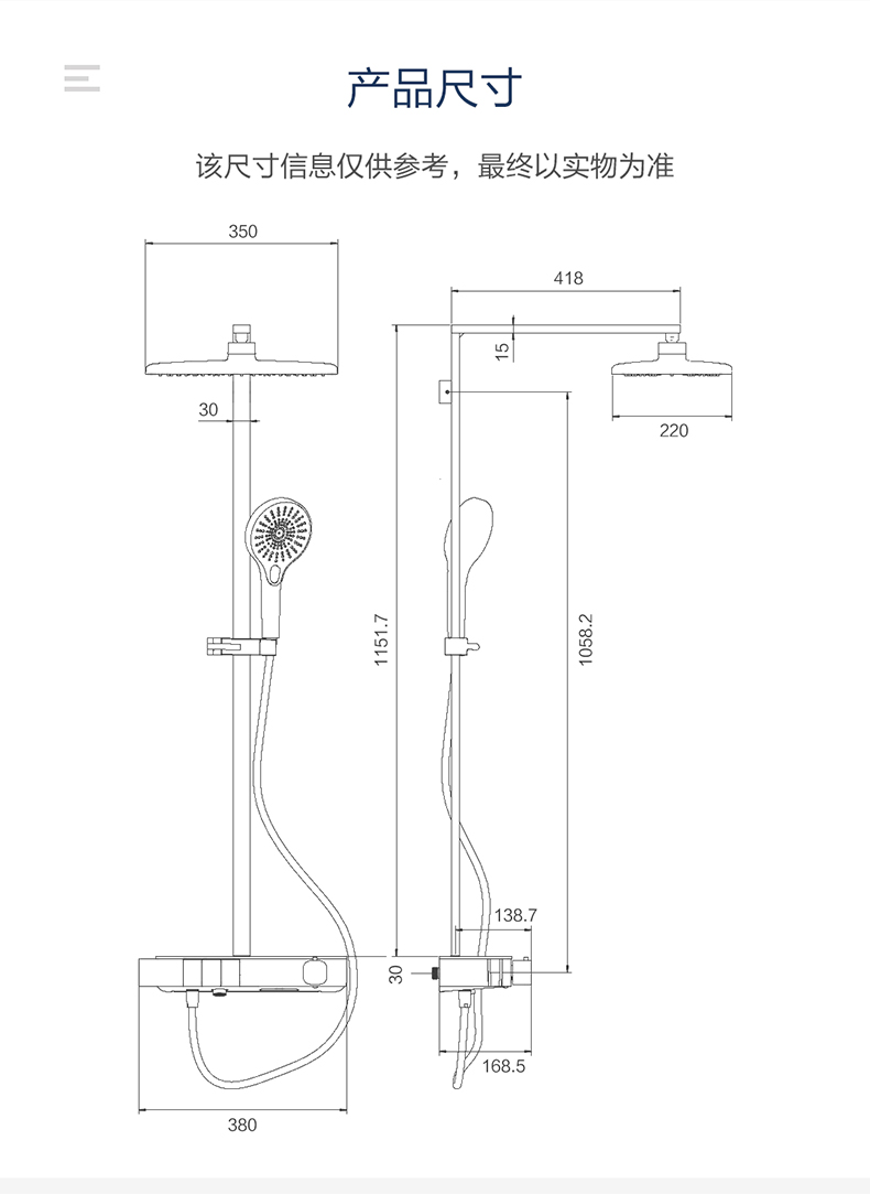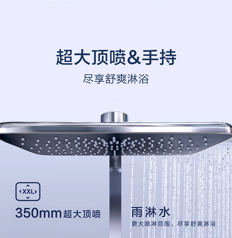 - 350mm超大顶喷,更大喷淋范围,尽享舒爽淋浴
