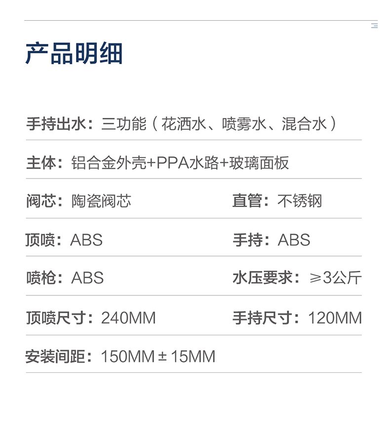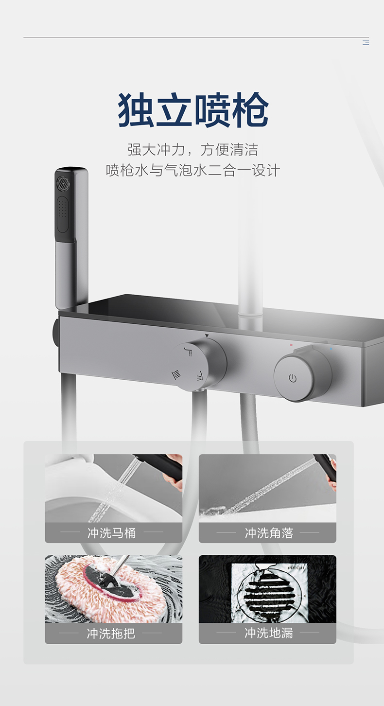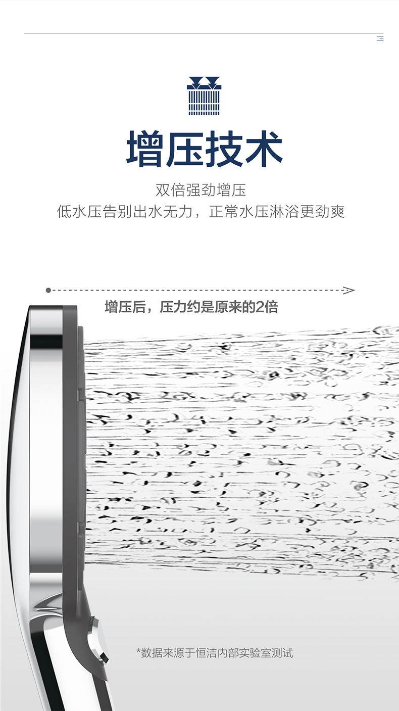 恒洁增压技术,0.45mm极致细孔设计,出水密集柔和