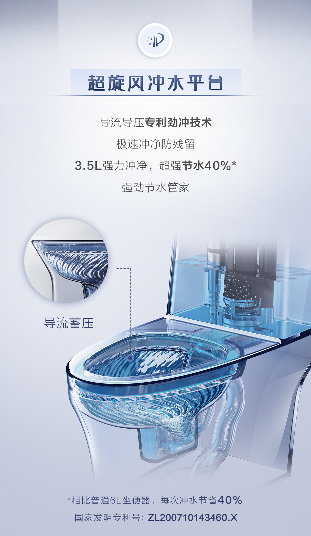 - 超旋风冲水平台:3.5L强力冲净,超强节水40%