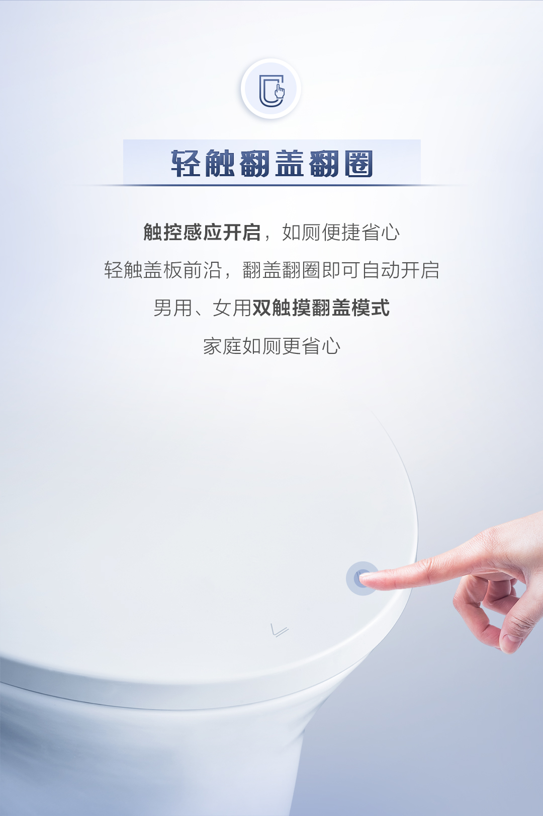 - 轻触翻盖翻圈:触控感应开启,如厕便捷省心