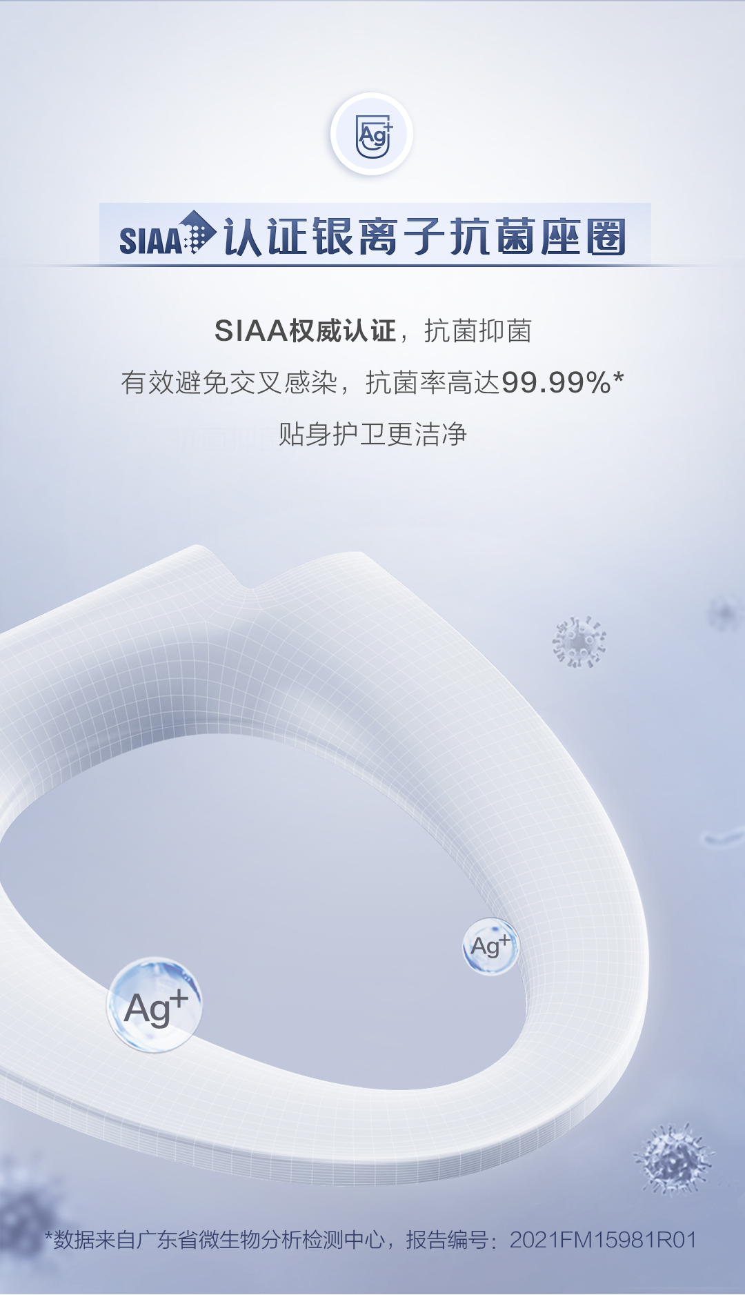 - SIAA认证银离子抗菌座圈:SIAA权威认证,抗菌率高达99.99%