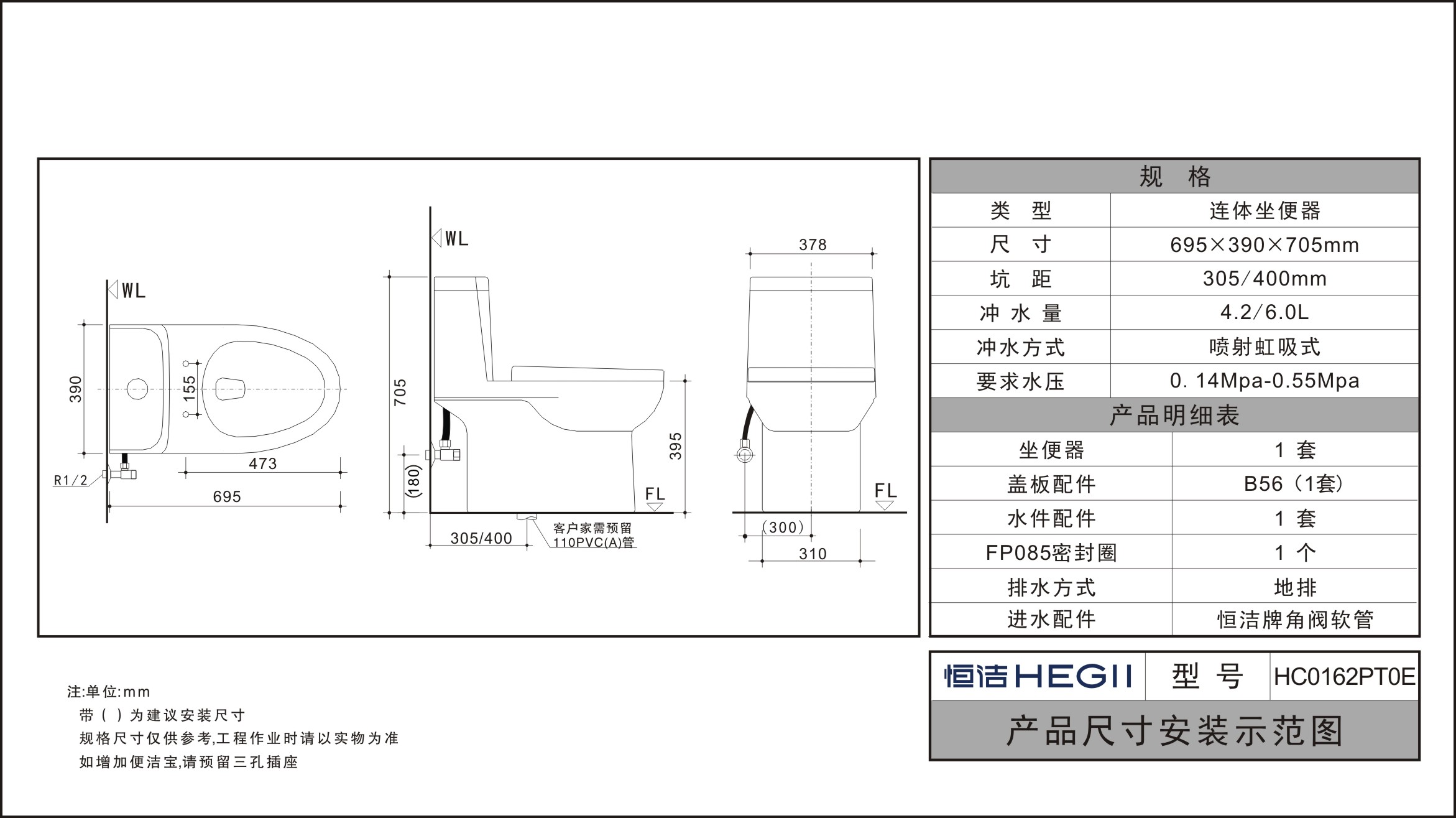 - 要求水压:0.14Mpa-0.55Mpa