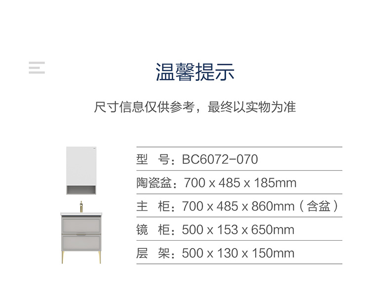 双材质运用:铝合金镜柜,抑菌防霉,防潮耐用;柜身生态木,免漆环保,面板使用铝型材立体边框;