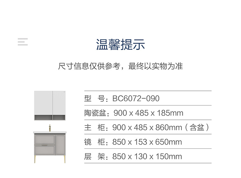 双材质运用:铝合金镜柜,抑菌防霉,防潮耐用;柜身生态木,免漆环保,面板使用铝型材立体边框;