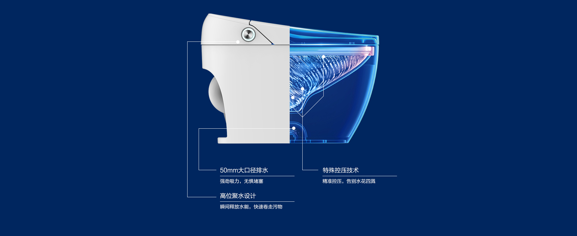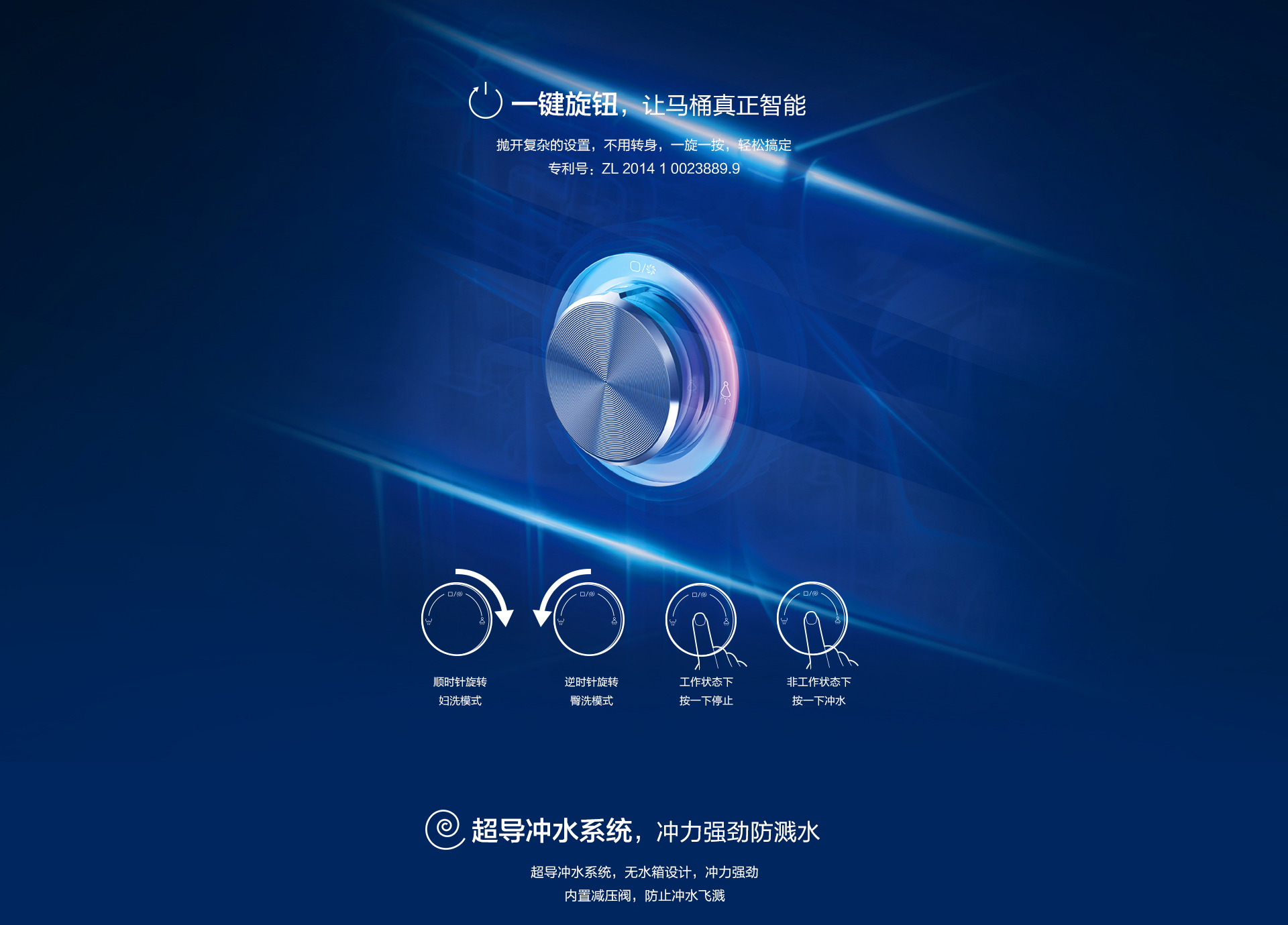 超导冲水系统:冲洗更干净,内置减压阀,防溅水贴心设计