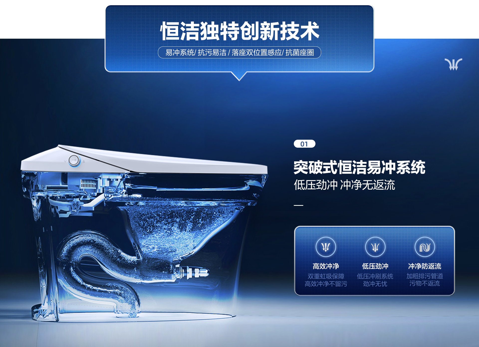 恒洁易冲系统:0.1MPa低压劲冲,人性化大小冲设计