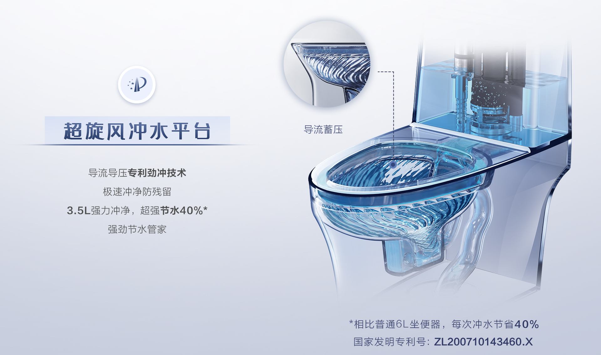 一次冲净,只需3.5L水,节水达40%